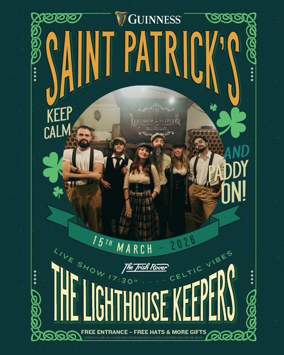 En ambas fechas la entrada será libre hasta completar aforo, y regalaremos los tradicionales gorros de la suerte para seguir la tradición al pie de la letra. Buen momento para disfrutar de una pinta de Guinness, la célebre cerveza negra irlandesa, con la que hay que brindar en honor de San Patricio.