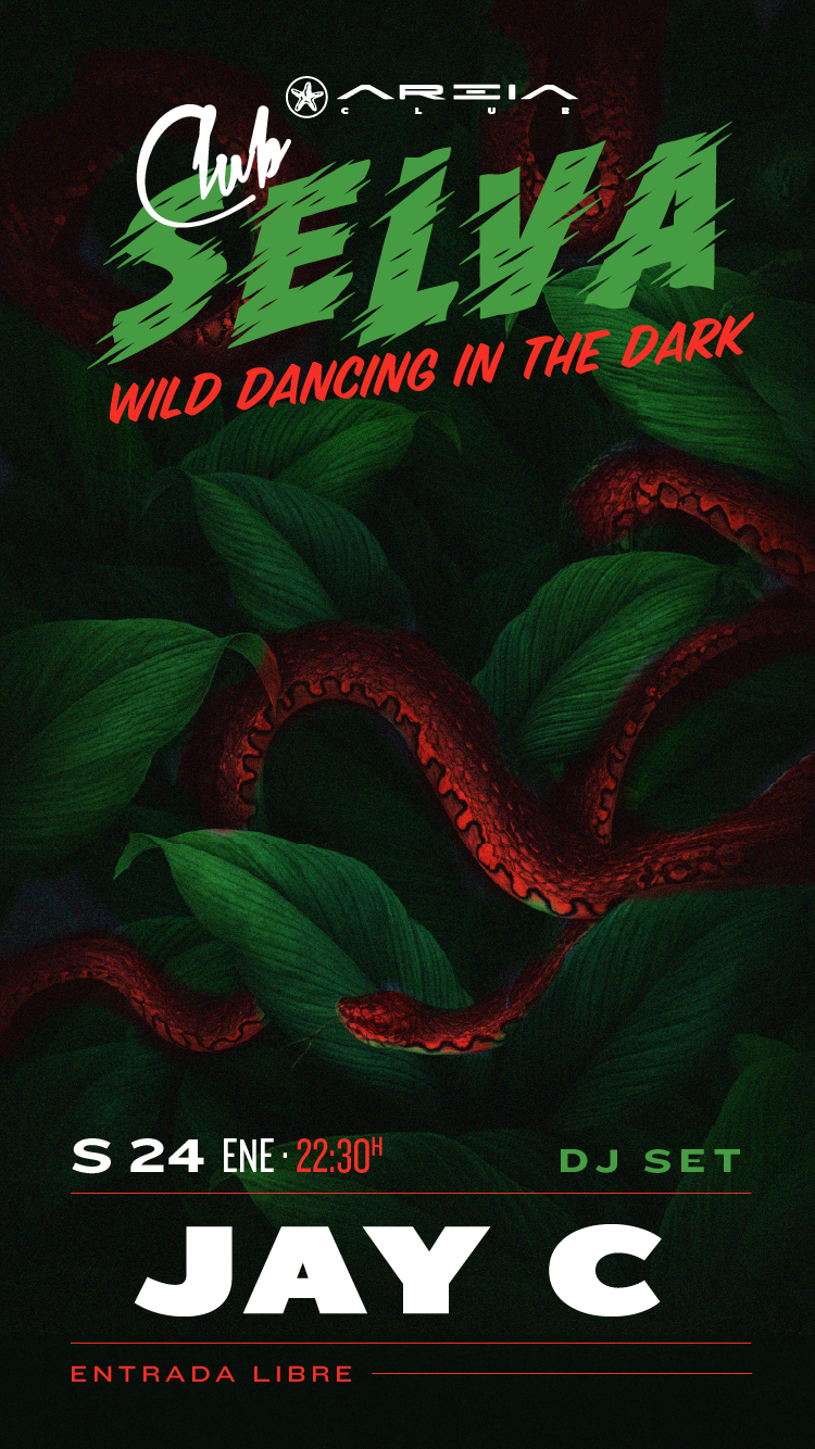 Los sábados a partir de las 22:30h, Areia se convierte en CLUB SELVA, una fiesta exclusiva y diferente en la que la iluminación, la decoración y el atrezzo, se ponen al servicio de la música y del baile.