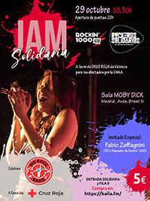 El próximo 29 de octubre se cumple un año de la terrible DANA que arrasó Valencia y los rockeros madrileños nos vamos a juntar para hacerles un homenaje con una gran noche de rock. Así que, el día tienes una cita única en la ballena con la JAM Solidaria organizada por Rockeros Solidarios y Rockin'1000, con la colaboración de la increíble Big Rock Band. Va a ser una noche llena de música, energía y compromiso social en la que todo lo que se recaude será a favor de Cruz Roja de Valencia para ayudar a los afectados por la DANA.