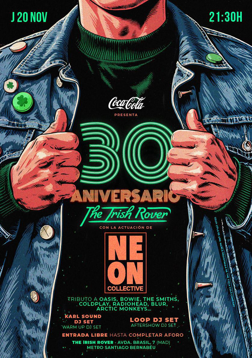 Hace ya tres décadas que The Irish Rover abría sus puertas en la Avenida Brasil. Al primogénito de la familia, Moby Dick Club, le nacía un hermano pequeño, irlandés, que rápidamente se hizo muy grande. Una fecha así de señalada hay que celebrarla por todo lo alto. Será el próximo jueves 20 de noviembre y hemos pedido a Neon Collective que nos canten el Cumpleaños Feliz.